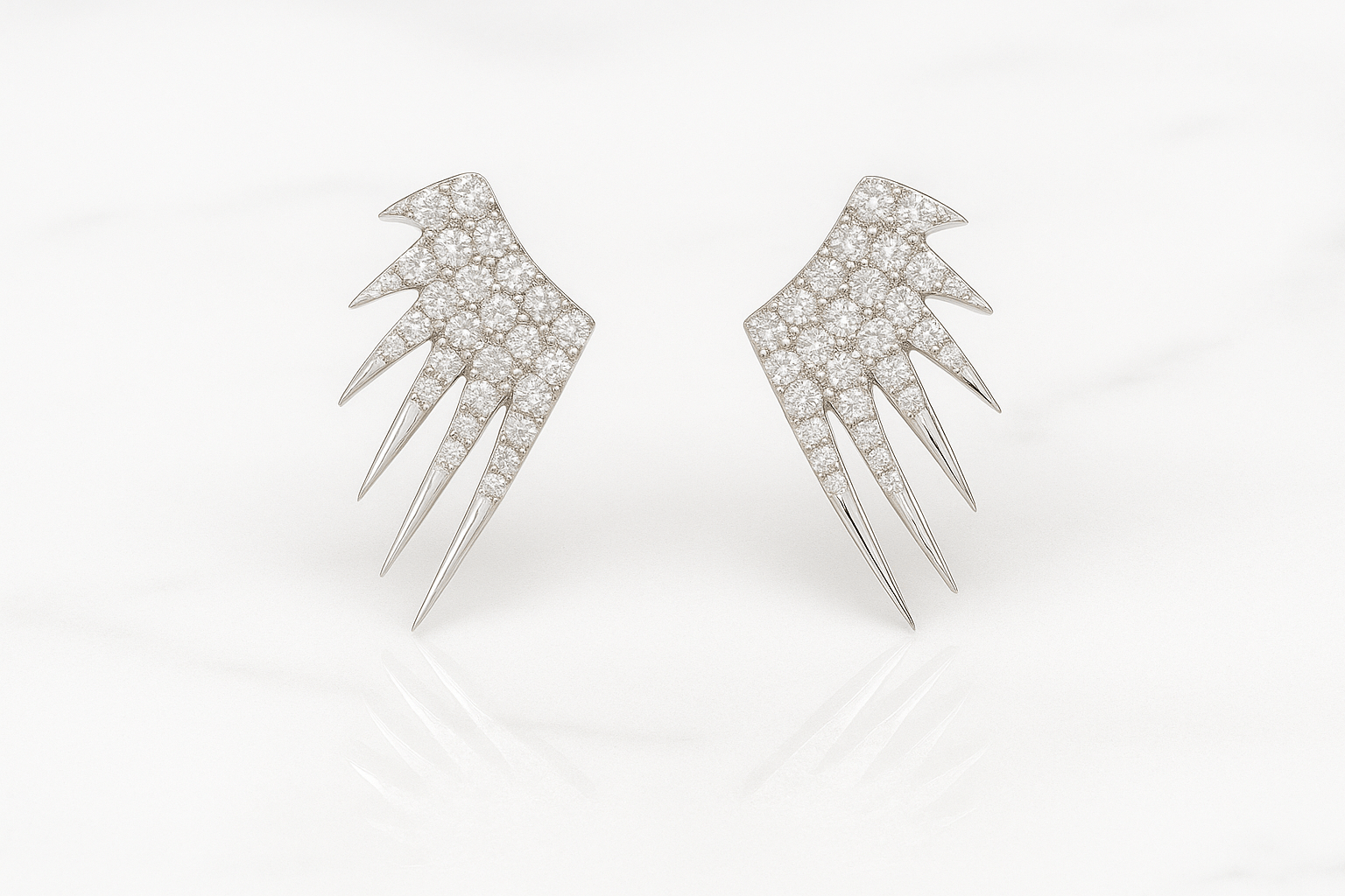 Unleash your inner strength and style with the Fierce Wings Earrings, an avant-garde creation crafted from pure 925 sterling silver and encrusted with AAA-grade brilliant-cut zircons. Inspired by bold wing motifs, these earrings channel power and elegance in every spike and shimmer.