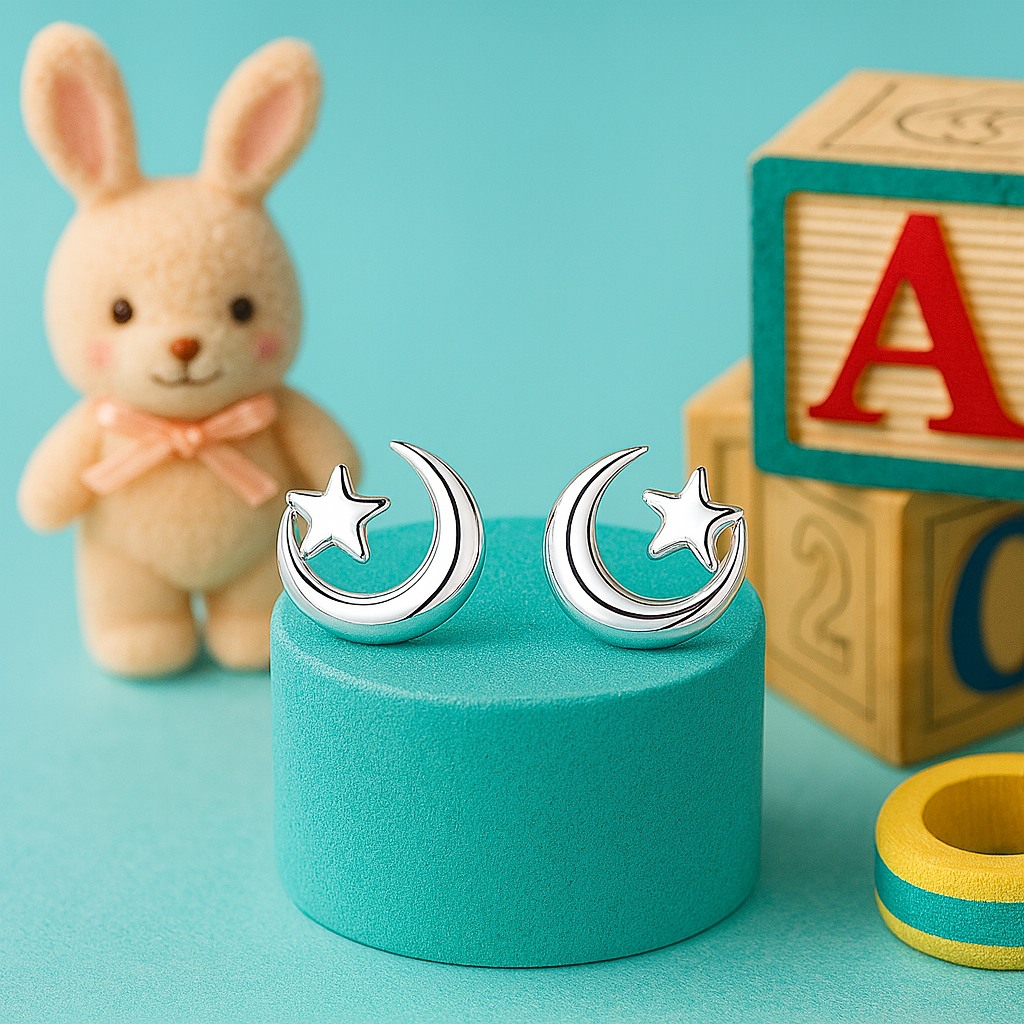 Kids Moon & Star Earrings - 925 Sterling Silver