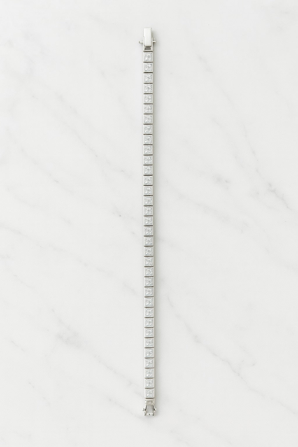 Elevate your elegance with our handcrafted Silver 925 Tennis Bracelet, featuring a continuous line of radiant square-cut zircon stones. Each high-grade zircon is meticulously set in a sleek, polished silver frame, offering a refined shimmer that captures the light with every movement.